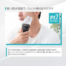 持ちやすいフォルムにIPX7の高い防水性能を備えた3枚刃シェーバー。トリマー刃付きで長い毛やもみあげを整えることもできます。